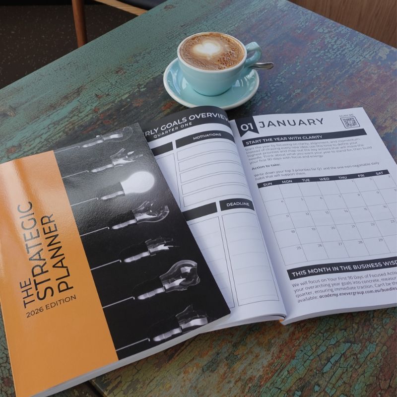 The Strategic Planner is designed by business strategist Clive Enever to help you set, measure, and track your goals with clarity throughout the year. This edition gives you the structure, tools, and business know-how you need to stay focused and on track.